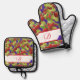 Farbige Fruchtmonogramm Polka-Dot Oven Mitt & Pot Ofenhandschuh & Topflappen-Set