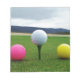 Gelbe, rosa und weiße, leuchtend farbige Golfbälle auf einem Foto von Sandy Closs am Arrowhad-See. Golf, Golfer, Golfen, "Golf Grobse", Frühjahr, "Sport", Ostern, Urlaub, "Osterei" pink, Golfer blau gelb