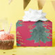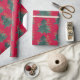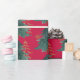 Ein winterliches Urlaubspapier-Design von WaldEvergreens mit goldenen Schneeflocken und goldenen, schneebedeckten Bäumen, die alle in Rot gehalten sind.