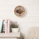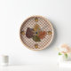 Eine tolle Uhr für alle, die Lieben fallen und im Raum rustikale Erdfarben haben. Ein heller Rost und ein bräunlicher, karierter Hintergrund haben eine süße Grafik von Eicheln, die 4 Zahlen auf der Uhr darstellen, mit einer Hand voll Herbstblätter, in der Mitte. Anpassen, um jeden gewollt Text hinzuzufügen. Macht eine tolle Geschenkidee.
