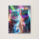 Zwei Katzen, farbenfrohe, Niedliche Cyberpunk-Weltraumkatzen mit Neon-Lights-Regenbogenfarben in einer Fantasie-Welt-Sci-Fi-Stil futuristische Digital-Malerei 3D-Stil farbiges Katzen-Poster für Kinder-Raum, Katzen-Puzzle,