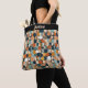 Kreise und Ovale in Blau, aquamarin, Gold, Schwarz, Rost und Braun bilden eine ungewöhnliche und wunderschöne Totentasche. Modern, künstlerisch und stilvoll. Ideal für Büro, Schule und Strand. Personalisieren Sie mit Ihrem Namen in einer breiten, schwarzen Band an der Spitze.