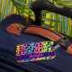 Farbenfrohe Gepäckanhänger mit einem schönen Leopardenprint in lebhaften Regenbogenfarben. Das lila Band im unteren Teil kann mit eigenem Text oder Namen angepasst werden.