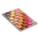 Helle, farbenfrohe und schräge Stapel Macarons.