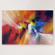 Farbenfrohe moderne Abstrakte expressionistische Stilgemälde zeitgenössisch rot-gelb-grün blaues Lila Puzzle des Künstlers Serdar Hizli.