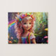 Farbenfrohe, schöne Niedliche kleine Fee mit Regenbogenfarben im verzauberten Wald, Zauberwelt, Fantasy Art für Mädchen. Girly Design. Farbenfrohe Baldachin für Kinderzimmer, Kinderzimmer, Mädchenzimmer. Geschenk für Mädchen.