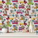 Farbenfrohe Niedliche Tiere Autos Kids Muster Tapete bietet farbenfrohe Autos und Fahrzeuge, die von niedlichen Tieren gefahren werden. Ideal für Kinder-Schlafzimmer, Kinderzimmer-Dekoration, Zuhause, Büro- und Party-Dekoration. Erstellt von Evco Studio www.zazzle.com/store/evcostudio