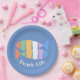 Farbenfrohe Teller mit doppeltem Fisch-Design mit anpassbarer Hintergrundfarbe.