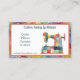 Diese lustige, unverwechselbare Visitenkarte zum Nähen und Steppen von Handwerkern wird mit einer niedlichen Patchwork-Nähmaschine und farbenfrohen Grenzakzenten gedruckt. Text in dunkelblau. Passen Sie alle Texte vorne und hinten im einfachen Online Zazzle-Formular an.