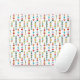 Dieses Mauspad hat ein modernes Design von Pfeilen aus schwarzen Linien und verschiedenen Formen in Retrofarben Rot, Blau, Grün, Orange, Gold und Grau auf einem Feld von Weiß. Woll das gleiche Design mit verschiedenen Farben? Nachricht.