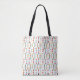 Diese Tasche hat ein modernes Design von Pfeilen aus schwarzen Linien und verschiedenen Formen in Retrofarben rot, blau, grün, orange, gold und grau auf einem Feld von weiß. Woll das gleiche Design mit verschiedenen Farben? Nachricht.