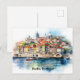 Karo in dieser farbenfrohen Porto Portugal Aquarellbild auf einer Postkarte, die einen Panoramablick über die portugiesische Stadt mit ihrer einzigartigen Architektur und Sehenswürdigkeiten bietet. Es ist ein perfektes Reiseandenken und eine Geschenkidee für dieses beliebte Reiseziel in Europa. Kaufen Sie dieses Produkt jetzt und machen Sie es zu Ihrem eigenen Produkt.