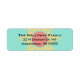 Stilvolles Rücksendelabel in helltürkisfarbener Ausführung, mit Grafiken eines hellgelben und korallenbraunen Sonnendesigns. Schwarzer Text ist bereit, für besondere Anlass oder jeden Tag zu personalisieren.
