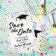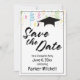 Diese festliche Save the Date Karte bietet fett schwarze Schrift, eine Graduierungskappe und farbenfrohe Konfetti-Grafiken. Verwenden Sie die Vorlagenfelder, um Ihre eigenen Daten hinzuzufügen, und klicken Sie auf, um die Bearbeitung zu beschleunigen, wenn Sie zum Ändern von Farben, Schriftart, Layout oder anderen Designelementen gewollt haben. Der Kopftext, die Kappe und die Konfetti-Grafik können bei Bedarf neu positioniert und in der Größe angepasst werden.
