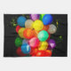 Ein Haufen, ein Haufen heller und farbenfroher Spielzeugballons vor dem Hintergrund des dunklen Waldes. Texturierte Fotos.