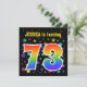 Dieses lustige, aufregende und lebendige Geburtstagsfeier-Einladungs-Design zeichnet sich durch ein buntes Sternenmuster aus, zusammen mit der Zahl "73" mit einem bunten Regenbogen-ähnlichen Spektrum oder Gradientenmuster. Der Name auf der Vorderseite kann angepasst werden. Auf der Rückseite finden Sie personalisierte Informationen über das Party. Einladungen zum Geburtstag, wie diese, können an potenzielle Teilnehmer zu einer Geburtstagsparty geschickt werden, die zur Feier des dreiundsiebzigsten Geburtstages von jemandem abgehalten wird. [~Z0000349]