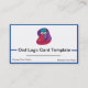 Farbige Visitenkartenvorlage für das Eule-Logo. Niedliche Eule mit einem künstlerischen Hut. Passen Sie Ihre Eule-Logo-Kartenfarben, Papierstile, Schriftart an und ordnen Sie Ihre Grafiken nach Ihren Wünschen um. Vogel-Logos von dem klügsten fethered friend. Ideal für Künstler, Vogeldienstunternehmen.
