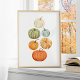 Ein wunderschönes Poster mit Wasserfarbenkürbissen in verschiedenen Formen und Farben. Ideal, um Ihr Haus für den Herbst zu dekorieren.