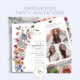 Farbenfrohe Wildblume Foto Abschluss Einladung. Bewundern Sie die Reise Ihres Absolventen mit dieser schicken Einladung mit einem eleganten Seitenbukett handgemalter bohoner Wildblumen in dunkelblau, hellrosa, rot, goldgelb, leuchtend rot und schlaugrün. Ergänzt durch einen dedizierten Platz für eine persönliche Collage aus Foto, lasse dieses Design Ihnen, die Botschaft, die Farben und den Hintergrund zu personalisieren, um eine Einladung zu entwerfen, die Spannung und kreativen Flair ausstrahlt - Set die Bühne für ein unvergessliches Ereignis!