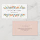 Florale Visitenkarte in Weiß mit einem Rand von Wildblumen in einem peachy orangefarbenen Hue umgeben von Grün, Beeren und Blau vergessen Sie mich nicht. Fügen Sie Ihre Kontaktinformationen auf der anderen Seite der Karte in Rosa ein.