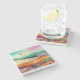 Dieser farbenfrohe Abstrakte Untersetzer besticht durch eine südwestliche Landschaft mit blühenden Orangen, Grüntönen, Pink und Püree.