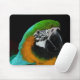 Ein hübsches, buntes Bild eines sehr exotischen und wunderschönen Vogels: der grüne und orangefarbene Papagei.