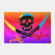 Diese Türmatte hat ein cooles künstlerisches Piratenbild darauf.