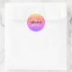 Farbenfroher Regenbogen-Glitzer Girly Round Shaped Sticker mit einem lila, weißen Monogramm. Personalisieren Sie mit Ihrem Namen und Initial.