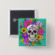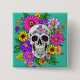 farbiger Schädel mit Blume Button