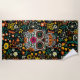 Farbiger Zuckerschädel mit Retro-Blume im Hintergr Strandtuch