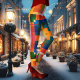 Leggings mit einem abstrakten geometrischen Muster in hellen Farben. Sie können das Muster skalieren, ziehen und drehen, wenn Sie wollen. Das Hotel ist sowohl für den Frühling als auch für die Weihnachtsfeiertage geeignet, da sie entweder als schick oder lässig getragen werden können.