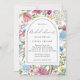 Blumenrahmen Bridal Dusche Einladung mit hübschen wilden Blume in lila, Lavendel, grünen Blätter und mehr, mit einem eleganten, bearbeitbaren Hintergrund