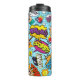 Farbige Comic-Buchgrafiken mit Sprachblasen auf blauem Hintergrund, nahtloses Wiederholmuster