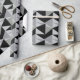 Dieses Verpackungspapier zeichnet sich durch ein mehrfarbiges geometrisches Design aus, das es Ihnen ermöglicht, die Farbe jedes der Dreiecke so anzupassen, dass Sie Ihren Geschmack Anzug. So passen Sie die Einstellungen an: 1. Öffnen Sie den Abschnitt "Bearbeiten mithilfe von Entwurfswerkzeugen". 2. Klicken Sie auf das Design. 3. Klicken Sie auf jede Farbanzeige in der Werkzeugseite rechts. 4. Wählen Sie die gewünschte Farbe aus der Farbpalette aus, die angezeigt wird, und wiederholen Sie den Vorgang für jede Uhr nach Bedarf.