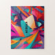 Farbenfrohe geometrische Gestaltung in aquamarin, lila, orange, schwarz und rosa mit fett schwarzer Bezeichnung oder Monogramm.
