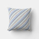 Dieses moderne, farbenfrohe gestreifte Kissen zeichnet sich durch diagonale Streifen in blau, blassgrün und braun auf weißem Hintergrund aus.
