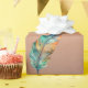 Eine wunderschöne Geschenkpackung mit einem glänzenden kupfer-Hintergrund und einer Auswahl an farbigen Federn, die kontrahieren. Perfekte Verpackung für Geburtstag, Hochzeiten oder Duschen.