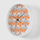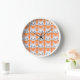 Farbiges Tiermuster auf orangefarbenem Hintergrund Uhr