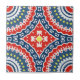 Farbenfrohe, lebendige Keramik-Fliesen mit einem nahtlosen Muster aus geometrischen Formen in Rot, Blau, Gelb und Weiß.
