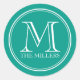 Moderner Rundaufkleber mit klassischem Classic Familienname Monogram mit einem klassischen weißen runden Rahmen mit bearbeitbarer Hintergrundfarbe (klicken Sie auf Anpassen, um darauf zuzugreifen). Personalisieren Sie es, indem Sie den Platzhalter-Text durch Ihren Anfangs- und Familiennamen ersetzen. Für weitere Optionen, wie zum Beispiel den Schriftart zu ändern und seine Größe, klicken Sie auf die Schaltfläche "Anpassen". *Bitte beachten Sie, dass das Zazzle-Wasserzeichen, das in der Zoomvorschau angezeigt wird, NICHT auf dem gedruckten Endprodukt erscheint. © Rosewood and Citrus