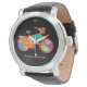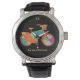 Uhr, Vintage Männeruhr mit schwarzem Lederarmband