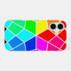 Eine farbenfrohe geometrische abstrakte Darstellung eines traditionellen Farbrads in der Form eines Sterns, mit festen Farbabschnitten mit dünnen weißen Linien dazwischen.
