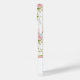 Oberflächenmuster mit rosafarbenen Blumenbouquets in Aquarellfarben mit Grünpflanzen auf einem subtil gestreiften rosa, schlanke, grüne und weiße gestreifte Hintergrund mit einem Boden weißer, geschmolzener Kante mit rosa und salzgrüner Oberkante. Fügen Sie einfach Ihren Vornamen und den letzten Vornamen hinzu, um das Design abzuschließen. Verbunddesign © 2021 Holiday Hearts Designs.