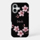 Farbrosa Schwarzer Kirschblossom Monogramm iPhone 16 Hülle