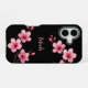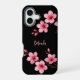 Farbrosa Schwarzer Kirschblossom Monogramm iPhone 16 Hülle