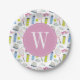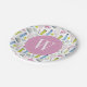 Farbrosa Tennismuster Monogramm Pappteller