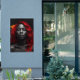 AI Farbe Splash Rotkopf auf schwarzem Hintergrund. Auffälliges Bild. Verfügbar als physisches Produkt oder digitaler Download.
