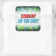 Dieses lebendige Design zeichnet sich durch ein Linienmuster aus, das verschiedene grüne und blaue Farbtöne abgibt, die von einem zentralen Punkt aus abstürzen. Es enthält auch die Meldung "STUDENT DES TAGES!".