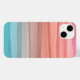 Ein mehrfarbiges iPhone 14 Gehäuse mit einem farbenfrohen Wasserfarbmuster mit Linien und Streifen in Korallenrosa, Türkis und Aqua Blau.