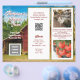 Passen Sie diese Broschüre zum Thema Landwirtschaft mit Ihren Fotos, Logo und QR-Code an. Das dreifaches Design enthält Vorlagen auf Vorder- und Rückseite. Seite 1 hat einen Platz für den Titel / Farm Namen / Geschäft. Fügen Sie auch ein Logo auf der Titelseite mit einem weiteren Textabschnitt ein. Zwei weiße Paneele haben roten Text für Stunden, Standort und Informationen über den Hof oder was Sie verkaufen. Das rechte Seitenfenster hat ein Hahn-Bild, das durch ein eigenes ersetzt werden kann. Das Tomatenbild und der rote Stall im Hintergrund behalten oder zu ändern. Auf Seite 2 befindet sich ein komplettes Foto eines Kuchen mit Backwaren. Ersetzen Sie es durch ein eigenes Foto (wenn Sie gewollt haben). Fügen Sie auch ein Foto und über Abschnitt, um die Werbung personalisieren. Falte dich zu Dritteln.